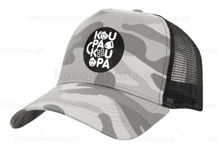 koupakoupa, Καπέλο Ενηλίκων Structured Trucker, με Δίχτυ, (παραλλαγή) Army Camo (100% ΒΑΜΒΑΚΕΡΟ, ΕΝΗΛΙΚΩΝ, UNISEX, ONE SIZE)