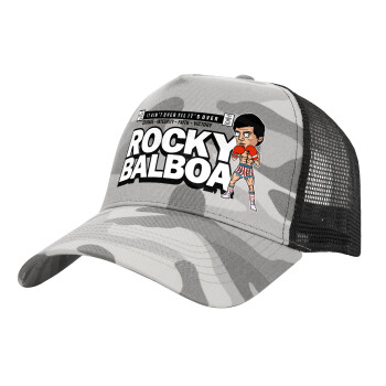Rocky Balboa, Καπέλο Ενηλίκων Structured Trucker, με Δίχτυ, (παραλλαγή) Army Camo (100% ΒΑΜΒΑΚΕΡΟ, ΕΝΗΛΙΚΩΝ, UNISEX, ONE SIZE)