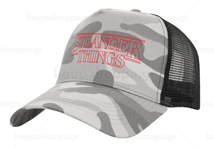 Stranger Things Logo, Καπέλο Ενηλίκων Structured Trucker, με Δίχτυ, (παραλλαγή) Army Camo (100% ΒΑΜΒΑΚΕΡΟ, ΕΝΗΛΙΚΩΝ, UNISEX, ONE SIZE)