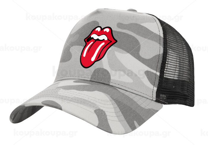 Rolling Stones Kiss, Καπέλο Ενηλίκων Structured Trucker, με Δίχτυ, (παραλλαγή) Army Camo (100% ΒΑΜΒΑΚΕΡΟ, ΕΝΗΛΙΚΩΝ, UNISEX, ONE SIZE)
