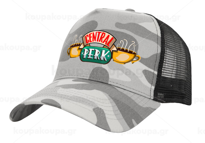 Central perk, Καπέλο Ενηλίκων Structured Trucker, με Δίχτυ, (παραλλαγή) Army Camo (100% ΒΑΜΒΑΚΕΡΟ, ΕΝΗΛΙΚΩΝ, UNISEX, ONE SIZE)