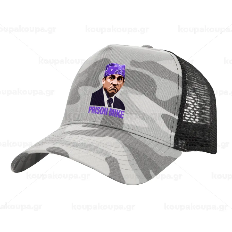 Prison Mike The office, Καπέλο Ενηλίκων Structured Trucker, με Δίχτυ, (παραλλαγή) Army Camo (100% ΒΑΜΒΑΚΕΡΟ, ΕΝΗΛΙΚΩΝ, UNISEX, ONE SIZE)