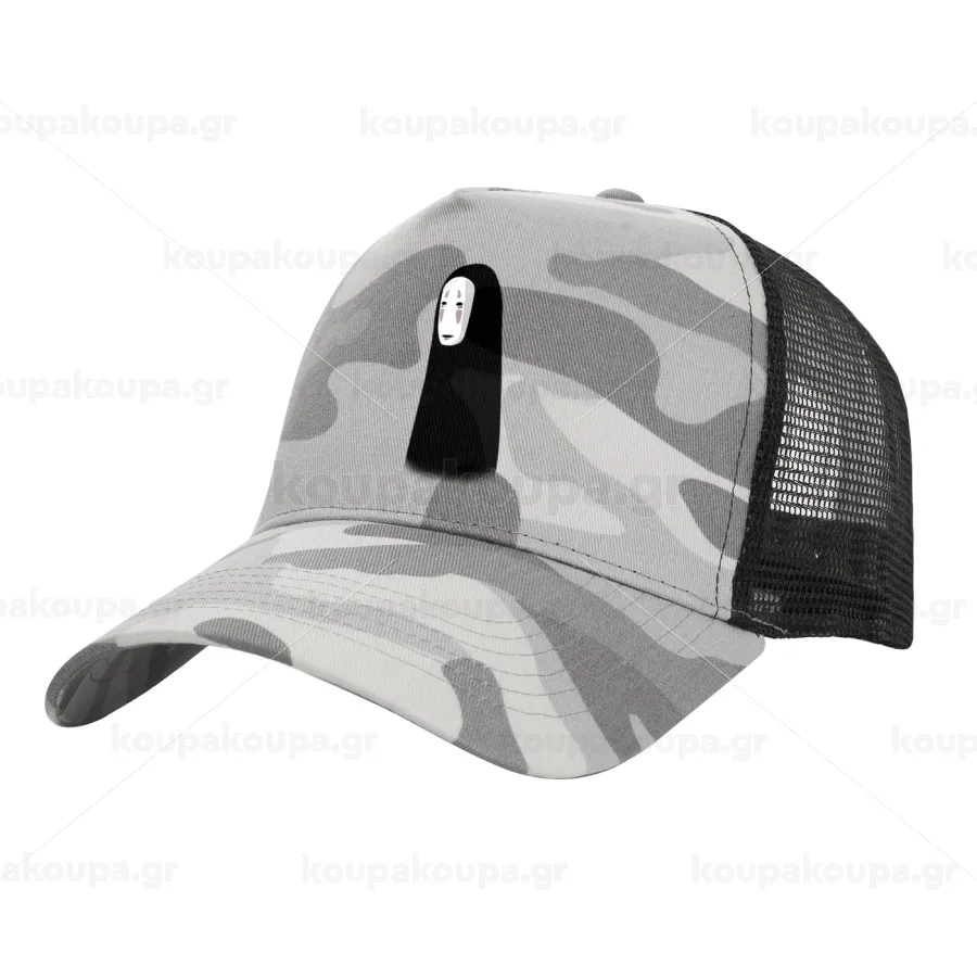 Spirited Away No Face, Καπέλο Ενηλίκων Structured Trucker, με Δίχτυ, (παραλλαγή) Army Camo (100% ΒΑΜΒΑΚΕΡΟ, ΕΝΗΛΙΚΩΝ, UNISEX, ONE SIZE)