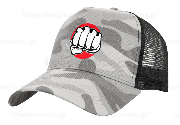 Γροθιά (punch), Καπέλο Ενηλίκων Structured Trucker, με Δίχτυ, (παραλλαγή) Army Camo (100% ΒΑΜΒΑΚΕΡΟ, ΕΝΗΛΙΚΩΝ, UNISEX, ONE SIZE)