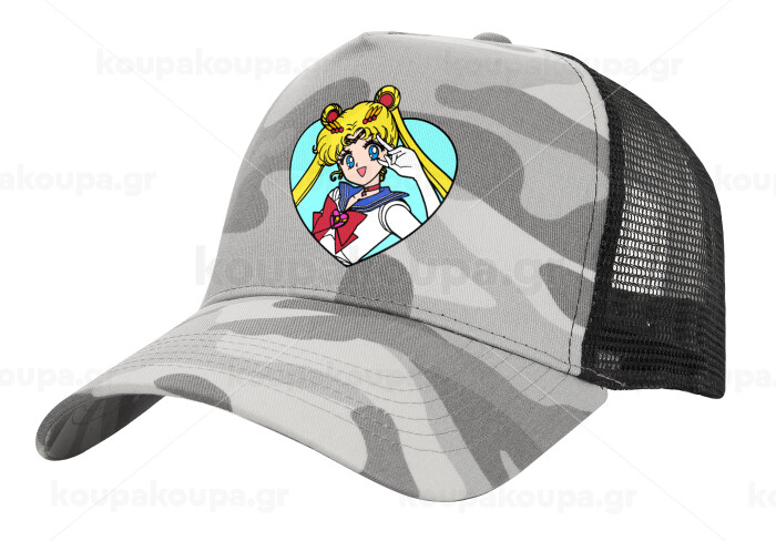Sailor Moon star, Καπέλο Ενηλίκων Structured Trucker, με Δίχτυ, (παραλλαγή) Army Camo (100% ΒΑΜΒΑΚΕΡΟ, ΕΝΗΛΙΚΩΝ, UNISEX, ONE SIZE)