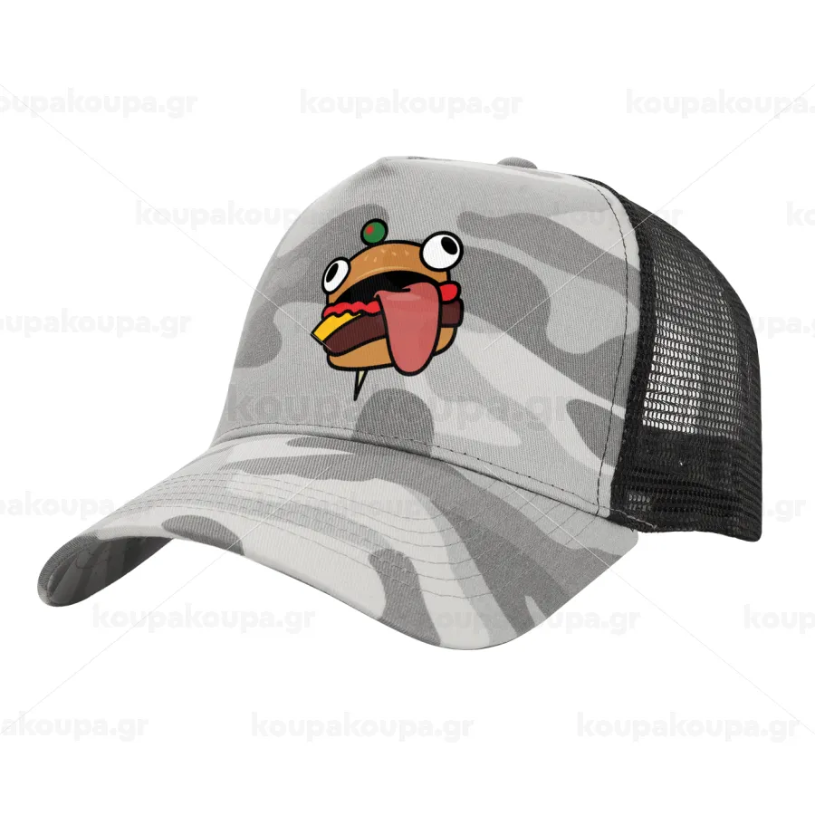 Fortnite Durr Burger, Καπέλο Ενηλίκων Structured Trucker, με Δίχτυ, (παραλλαγή) Army Camo (100% ΒΑΜΒΑΚΕΡΟ, ΕΝΗΛΙΚΩΝ, UNISEX, ONE SIZE)