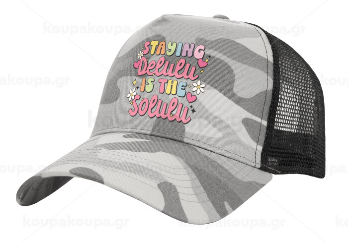 Delulu, Καπέλο Ενηλίκων Structured Trucker, με Δίχτυ, (παραλλαγή) Army Camo (100% ΒΑΜΒΑΚΕΡΟ, ΕΝΗΛΙΚΩΝ, UNISEX, ONE SIZE)