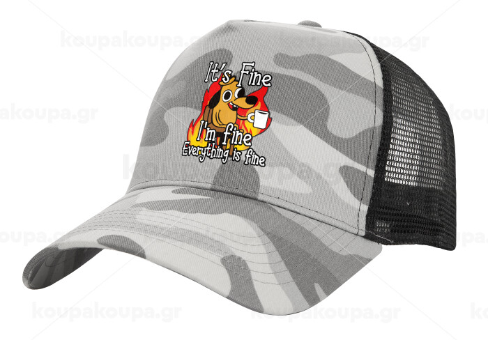 It's Fine I'm Fine Everything Is Fine, Καπέλο Ενηλίκων Structured Trucker, με Δίχτυ, (παραλλαγή) Army Camo (100% ΒΑΜΒΑΚΕΡΟ, ΕΝΗΛΙΚΩΝ, UNISEX, ONE SIZE)