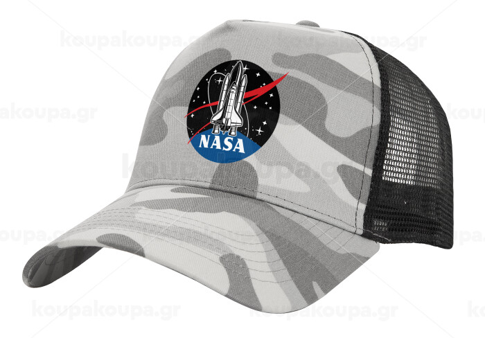 NASA Badge, Καπέλο Ενηλίκων Structured Trucker, με Δίχτυ, (παραλλαγή) Army Camo (100% ΒΑΜΒΑΚΕΡΟ, ΕΝΗΛΙΚΩΝ, UNISEX, ONE SIZE)