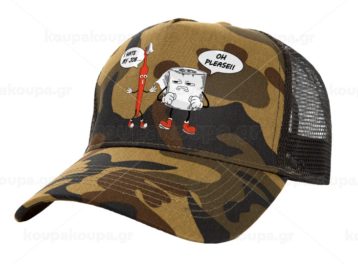I hate my job, Καπέλο Ενηλίκων Structured Trucker, με Δίχτυ, (παραλλαγή) Army (100% ΒΑΜΒΑΚΕΡΟ, ΕΝΗΛΙΚΩΝ, UNISEX, ONE SIZE)
