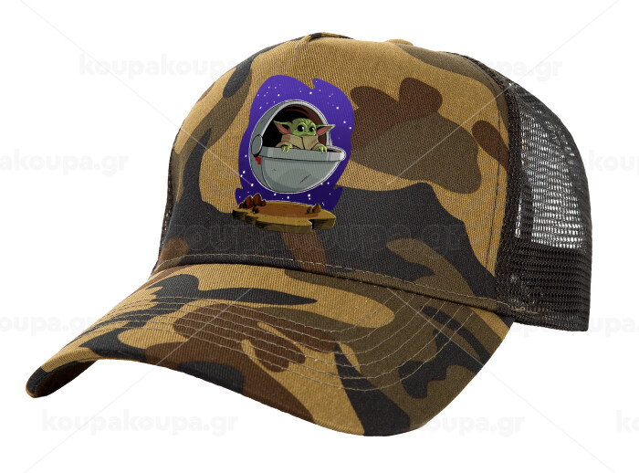 Baby Yoda mandalorian, Καπέλο Ενηλίκων Structured Trucker, με Δίχτυ, (παραλλαγή) Army (100% ΒΑΜΒΑΚΕΡΟ, ΕΝΗΛΙΚΩΝ, UNISEX, ONE SIZE)