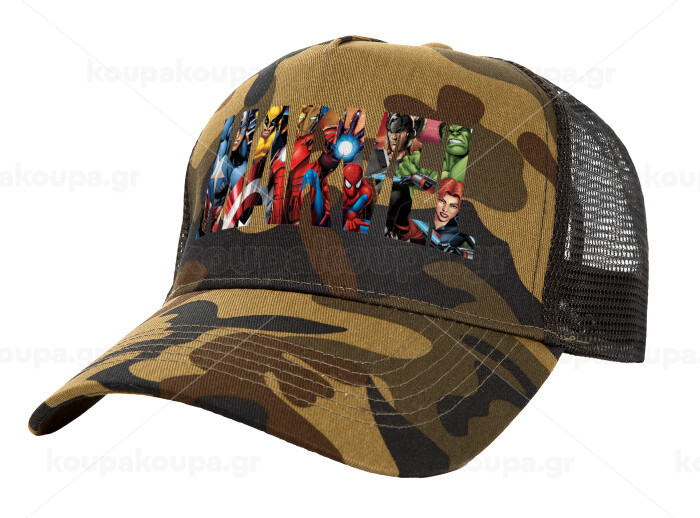 MARVEL characters, Καπέλο Ενηλίκων Structured Trucker, με Δίχτυ, (παραλλαγή) Army (100% ΒΑΜΒΑΚΕΡΟ, ΕΝΗΛΙΚΩΝ, UNISEX, ONE SIZE)