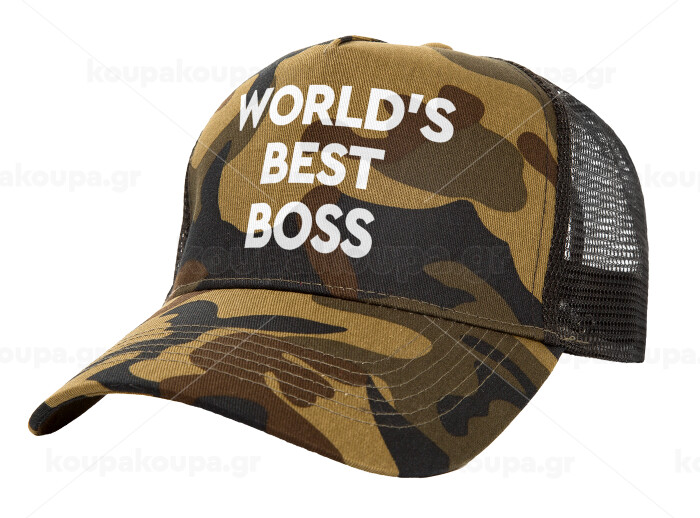 World's best boss, Καπέλο Ενηλίκων Structured Trucker, με Δίχτυ, (παραλλαγή) Army (100% ΒΑΜΒΑΚΕΡΟ, ΕΝΗΛΙΚΩΝ, UNISEX, ONE SIZE)