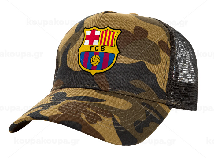 Barcelona FC, Καπέλο Ενηλίκων Structured Trucker, με Δίχτυ, (παραλλαγή) Army (100% ΒΑΜΒΑΚΕΡΟ, ΕΝΗΛΙΚΩΝ, UNISEX, ONE SIZE)