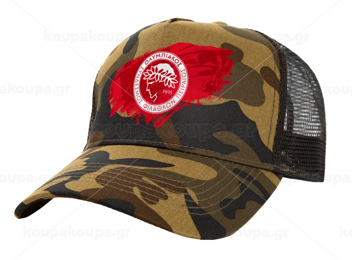 Olympiacos F.C., Καπέλο Ενηλίκων Structured Trucker, με Δίχτυ, (παραλλαγή) Army (100% ΒΑΜΒΑΚΕΡΟ, ΕΝΗΛΙΚΩΝ, UNISEX, ONE SIZE)