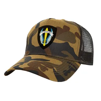 Έμβλημα Μονάδων Καταδρομών Ο Τολμων Νικα - Λοκ, Καπέλο Ενηλίκων Structured Trucker, με Δίχτυ, (παραλλαγή) Army (100% ΒΑΜΒΑΚΕΡΟ, ΕΝΗΛΙΚΩΝ, UNISEX, ONE SIZE)