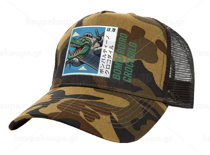 Bombardiro Crocodilo, Καπέλο Ενηλίκων Structured Trucker, με Δίχτυ, (παραλλαγή) Army (100% ΒΑΜΒΑΚΕΡΟ, ΕΝΗΛΙΚΩΝ, UNISEX, ONE SIZE)