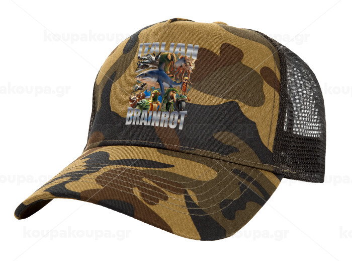 Italian Brainrot, Καπέλο Ενηλίκων Structured Trucker, με Δίχτυ, (παραλλαγή) Army (100% ΒΑΜΒΑΚΕΡΟ, ΕΝΗΛΙΚΩΝ, UNISEX, ONE SIZE)