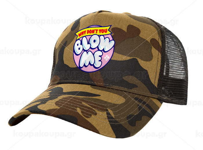 Why Don't You Blow Me Funny, Καπέλο Ενηλίκων Structured Trucker, με Δίχτυ, (παραλλαγή) Army (100% ΒΑΜΒΑΚΕΡΟ, ΕΝΗΛΙΚΩΝ, UNISEX, ONE SIZE)