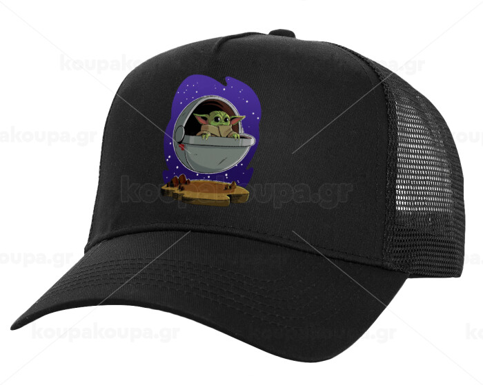 Baby Yoda mandalorian, Καπέλο Ενηλίκων Structured Trucker, με Δίχτυ, Μαύρο (100% ΒΑΜΒΑΚΕΡΟ, ΕΝΗΛΙΚΩΝ, UNISEX, ONE SIZE)