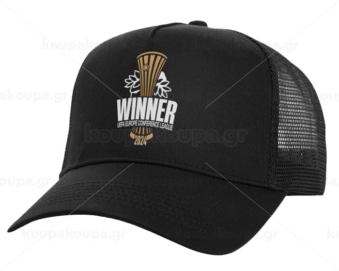 Europa Conference League WINNER, Καπέλο Ενηλίκων Structured Trucker, με Δίχτυ, Μαύρο (100% ΒΑΜΒΑΚΕΡΟ, ΕΝΗΛΙΚΩΝ, UNISEX, ONE SIZE)