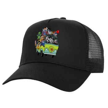 Stitch Halloween scooby car, Καπέλο Ενηλίκων Structured Trucker, με Δίχτυ, Μαύρο (100% ΒΑΜΒΑΚΕΡΟ, ΕΝΗΛΙΚΩΝ, UNISEX, ONE SIZE)
