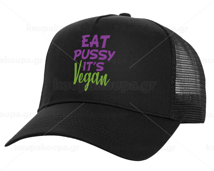 EAT pussy it's vegan, Καπέλο Ενηλίκων Structured Trucker, με Δίχτυ, Μαύρο (100% ΒΑΜΒΑΚΕΡΟ, ΕΝΗΛΙΚΩΝ, UNISEX, ONE SIZE)