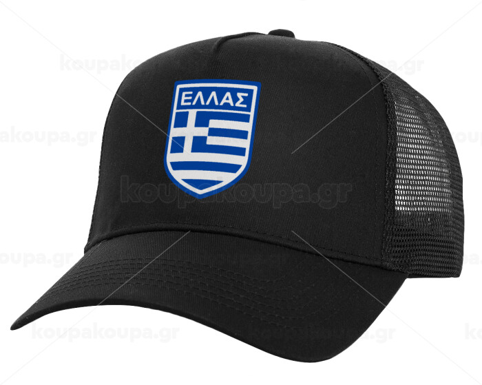 Ελλάς, Καπέλο Ενηλίκων Structured Trucker, με Δίχτυ, Μαύρο (100% ΒΑΜΒΑΚΕΡΟ, ΕΝΗΛΙΚΩΝ, UNISEX, ONE SIZE)