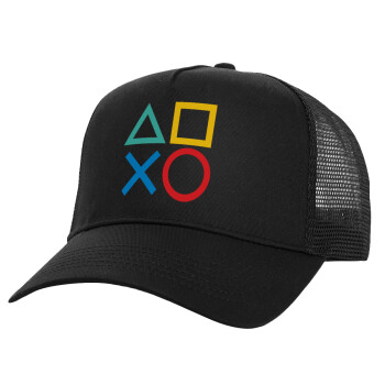 Gaming Symbols, Καπέλο Ενηλίκων Structured Trucker, με Δίχτυ, Μαύρο (100% ΒΑΜΒΑΚΕΡΟ, ΕΝΗΛΙΚΩΝ, UNISEX, ONE SIZE)
