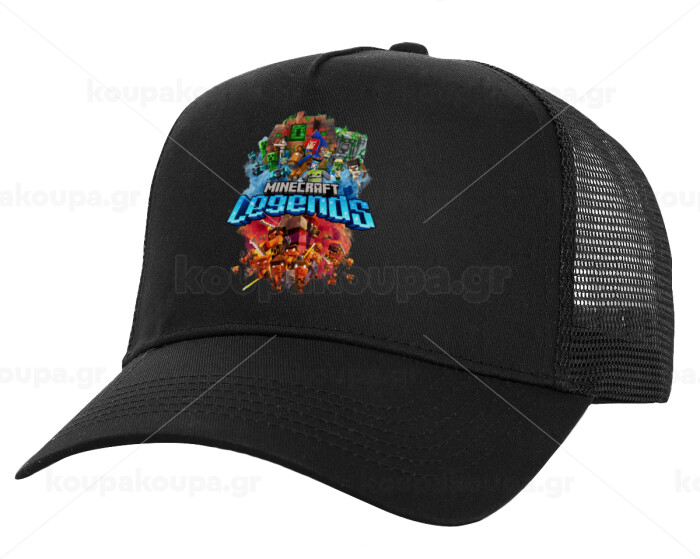 Minecraft legends, Καπέλο Ενηλίκων Structured Trucker, με Δίχτυ, Μαύρο (100% ΒΑΜΒΑΚΕΡΟ, ΕΝΗΛΙΚΩΝ, UNISEX, ONE SIZE)