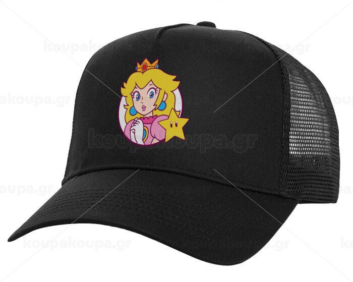 Princess Peach, Καπέλο Ενηλίκων Structured Trucker, με Δίχτυ, Μαύρο (100% ΒΑΜΒΑΚΕΡΟ, ΕΝΗΛΙΚΩΝ, UNISEX, ONE SIZE)