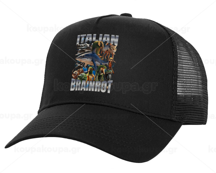 Italian Brainrot, Καπέλο Ενηλίκων Structured Trucker, με Δίχτυ, Μαύρο (100% ΒΑΜΒΑΚΕΡΟ, ΕΝΗΛΙΚΩΝ, UNISEX, ONE SIZE)