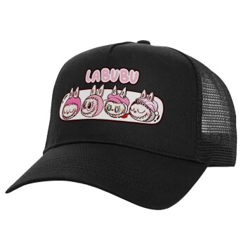 Labubu pink, Καπέλο Ενηλίκων Structured Trucker, με Δίχτυ, Μαύρο (100% ΒΑΜΒΑΚΕΡΟ, ΕΝΗΛΙΚΩΝ, UNISEX, ONE SIZE)