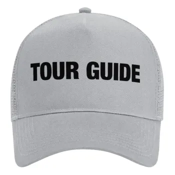 Tour Guide, Καπέλο Ενηλίκων Structured Trucker, με Δίχτυ, ΓΚΡΙ (100% ΒΑΜΒΑΚΕΡΟ, ΕΝΗΛΙΚΩΝ, UNISEX, ONE SIZE)