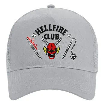 Hellfire CLub, Stranger Things, Καπέλο Ενηλίκων Structured Trucker, με Δίχτυ, ΓΚΡΙ (100% ΒΑΜΒΑΚΕΡΟ, ΕΝΗΛΙΚΩΝ, UNISEX, ONE SIZE)