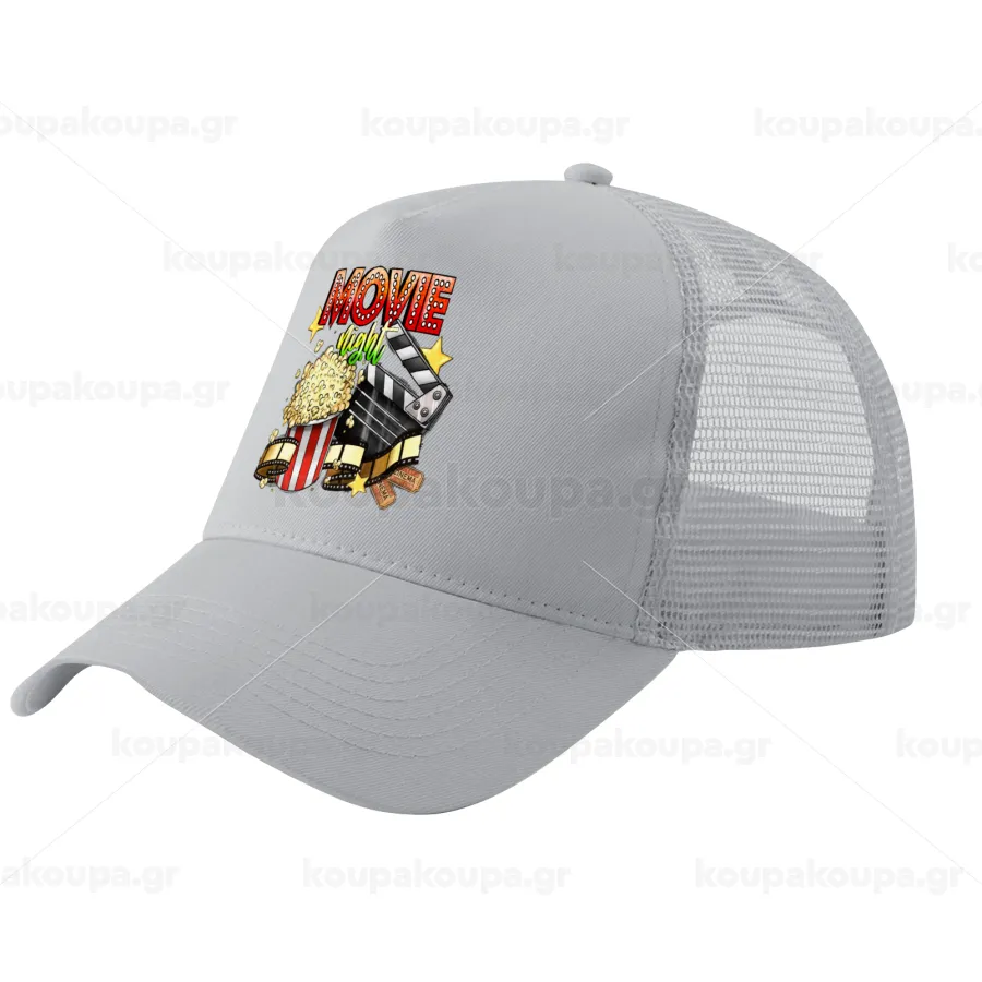 Movie night, Καπέλο Ενηλίκων Structured Trucker, με Δίχτυ, ΓΚΡΙ (100% ΒΑΜΒΑΚΕΡΟ, ΕΝΗΛΙΚΩΝ, UNISEX, ONE SIZE)