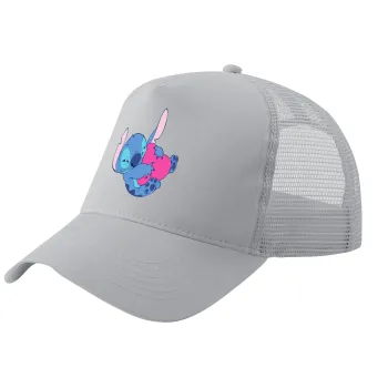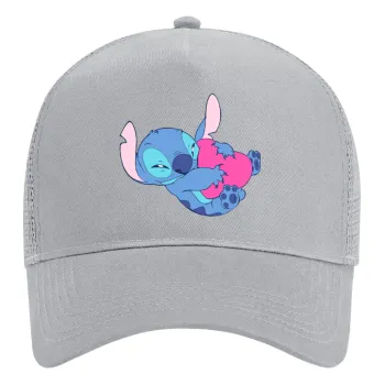 Lilo & Stitch hugs and hearts, Καπέλο Ενηλίκων Structured Trucker, με Δίχτυ, ΓΚΡΙ (100% ΒΑΜΒΑΚΕΡΟ, ΕΝΗΛΙΚΩΝ, UNISEX, ONE SIZE)