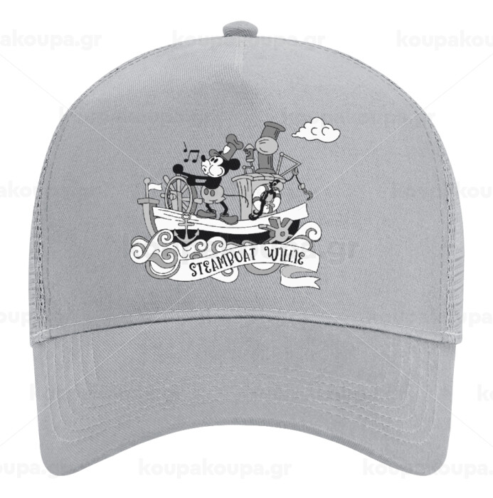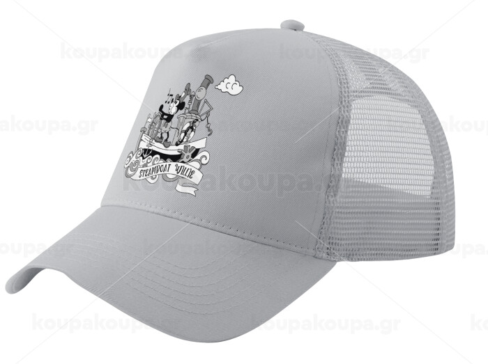 Mickey steamboat, Καπέλο Ενηλίκων Structured Trucker, με Δίχτυ, ΓΚΡΙ (100% ΒΑΜΒΑΚΕΡΟ, ΕΝΗΛΙΚΩΝ, UNISEX, ONE SIZE)