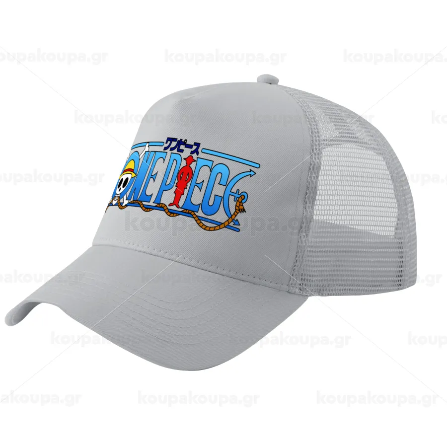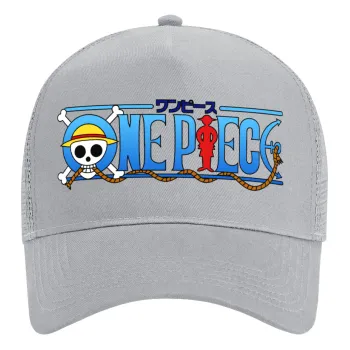 Onepiece logo, Καπέλο Ενηλίκων Structured Trucker, με Δίχτυ, ΓΚΡΙ (100% ΒΑΜΒΑΚΕΡΟ, ΕΝΗΛΙΚΩΝ, UNISEX, ONE SIZE)