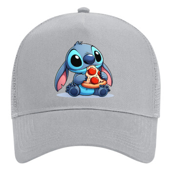 Stitch Pizza, Καπέλο Ενηλίκων Structured Trucker, με Δίχτυ, ΓΚΡΙ (100% ΒΑΜΒΑΚΕΡΟ, ΕΝΗΛΙΚΩΝ, UNISEX, ONE SIZE)