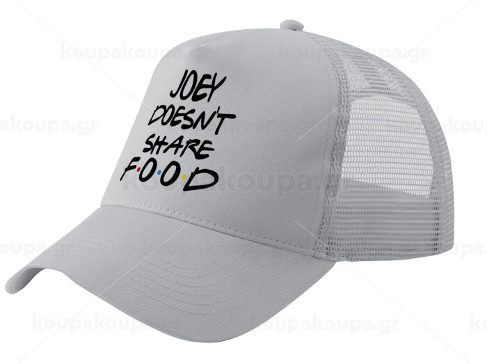 Joey Doesn't Share Food, Καπέλο Ενηλίκων Structured Trucker, με Δίχτυ, ΓΚΡΙ (100% ΒΑΜΒΑΚΕΡΟ, ΕΝΗΛΙΚΩΝ, UNISEX, ONE SIZE)