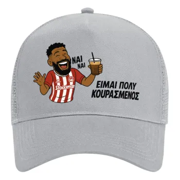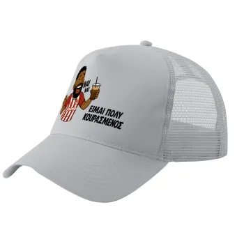 Ροντινέι, "ΠΟΛΥ ΚΟΥΡΑΣΜΕΝΟΣ", Καπέλο Ενηλίκων Structured Trucker, με Δίχτυ, ΓΚΡΙ (100% ΒΑΜΒΑΚΕΡΟ, ΕΝΗΛΙΚΩΝ, UNISEX, ONE SIZE)