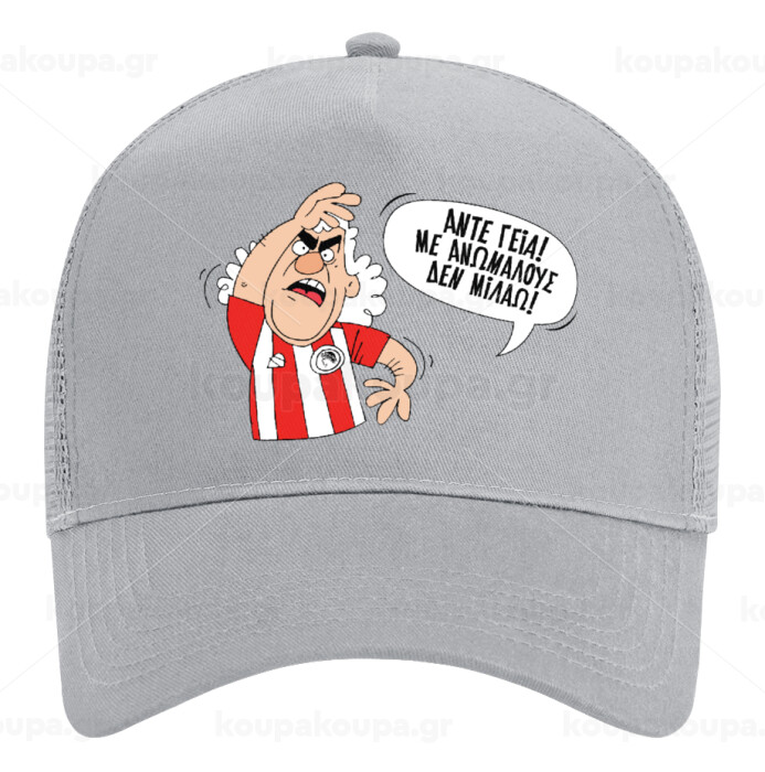 Τάκης, Άντε γεια, με ανώμαλους δεν μιλάω!, Καπέλο Ενηλίκων Structured Trucker, με Δίχτυ, ΓΚΡΙ (100% ΒΑΜΒΑΚΕΡΟ, ΕΝΗΛΙΚΩΝ, UNISEX, ONE SIZE)
