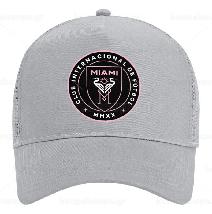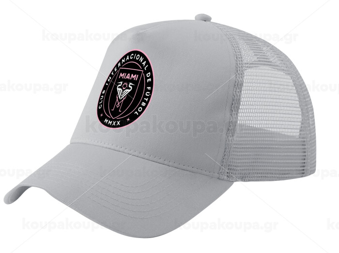Ίντερ Μαϊάμι (Inter Miami CF), Καπέλο Ενηλίκων Structured Trucker, με Δίχτυ, ΓΚΡΙ (100% ΒΑΜΒΑΚΕΡΟ, ΕΝΗΛΙΚΩΝ, UNISEX, ONE SIZE)