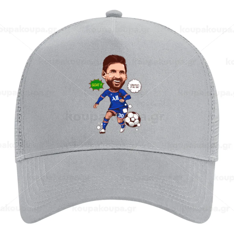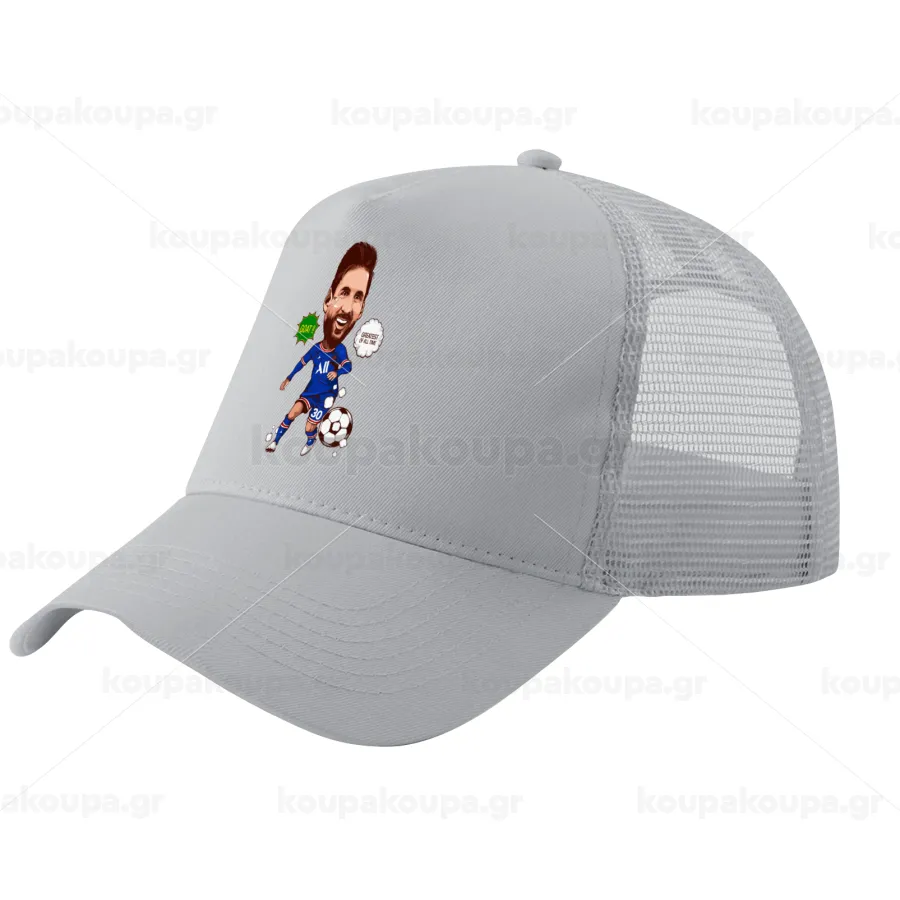 Lionel Messi drawing, Καπέλο Ενηλίκων Structured Trucker, με Δίχτυ, ΓΚΡΙ (100% ΒΑΜΒΑΚΕΡΟ, ΕΝΗΛΙΚΩΝ, UNISEX, ONE SIZE)