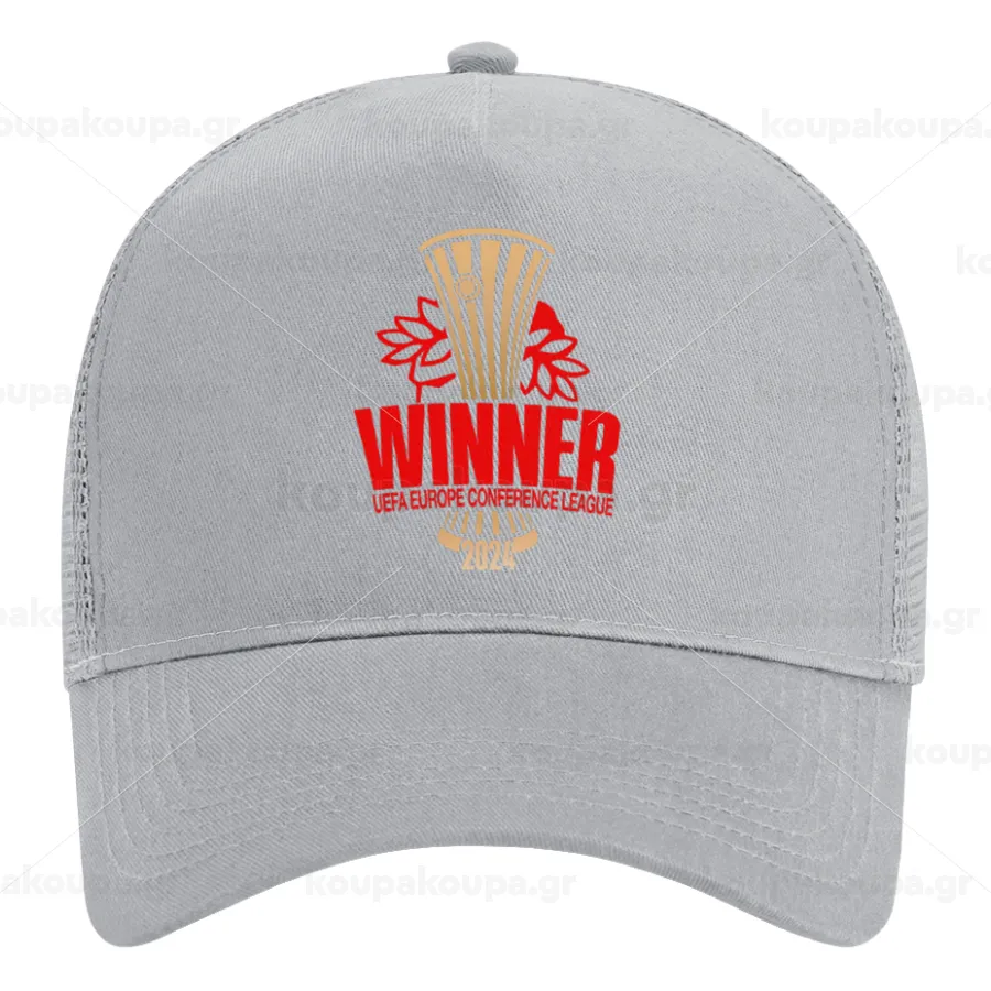 Europa Conference League WINNER, Καπέλο Ενηλίκων Structured Trucker, με Δίχτυ, ΓΚΡΙ (100% ΒΑΜΒΑΚΕΡΟ, ΕΝΗΛΙΚΩΝ, UNISEX, ONE SIZE)