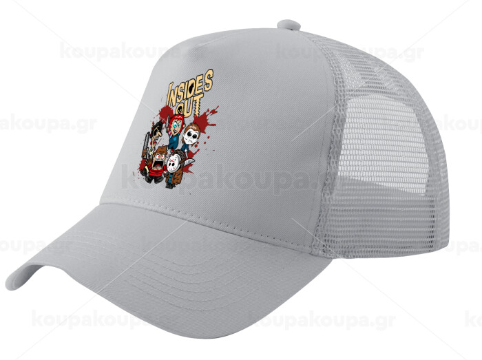 Halloween Inside out, Καπέλο Ενηλίκων Structured Trucker, με Δίχτυ, ΓΚΡΙ (100% ΒΑΜΒΑΚΕΡΟ, ΕΝΗΛΙΚΩΝ, UNISEX, ONE SIZE)