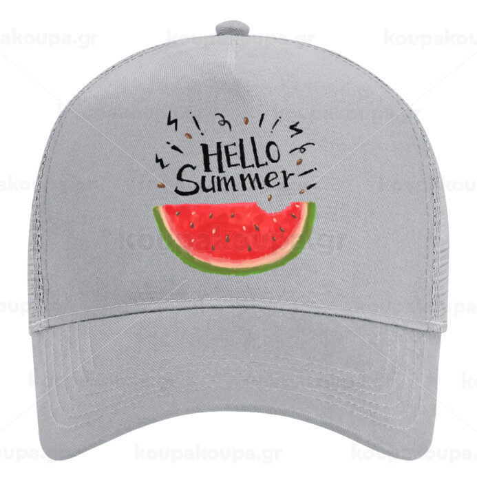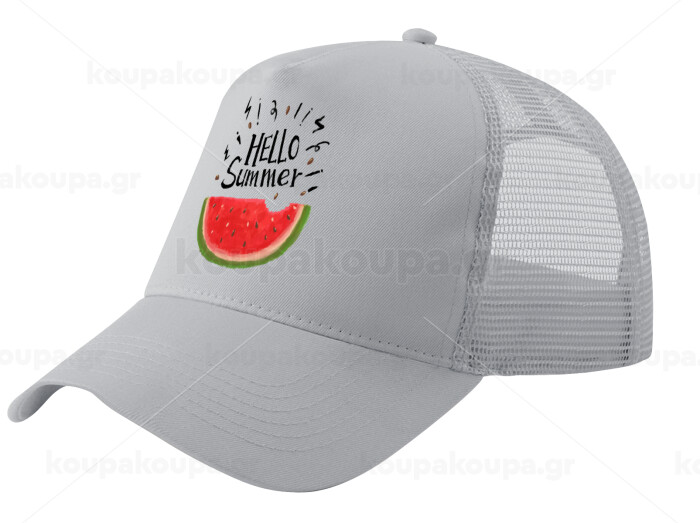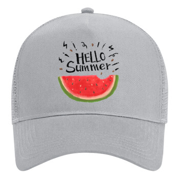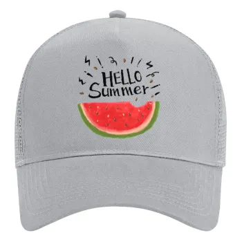Summer Watermelon, Καπέλο Ενηλίκων Structured Trucker, με Δίχτυ, ΓΚΡΙ (100% ΒΑΜΒΑΚΕΡΟ, ΕΝΗΛΙΚΩΝ, UNISEX, ONE SIZE)
