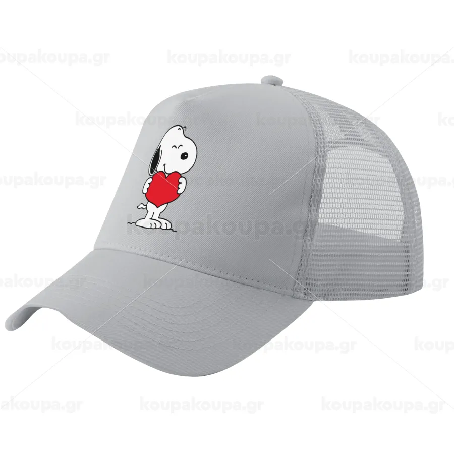 Snoopy takemy heart, Καπέλο Ενηλίκων Structured Trucker, με Δίχτυ, ΓΚΡΙ (100% ΒΑΜΒΑΚΕΡΟ, ΕΝΗΛΙΚΩΝ, UNISEX, ONE SIZE)