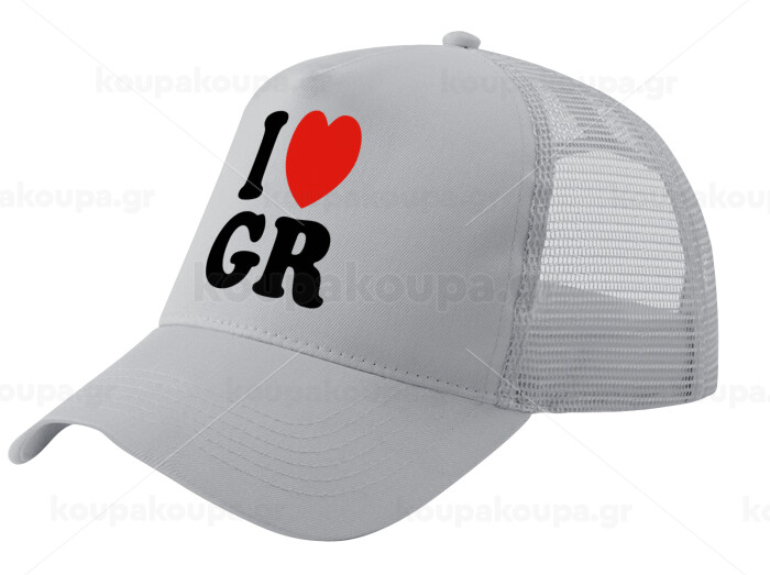 I Love GR, Καπέλο Ενηλίκων Structured Trucker, με Δίχτυ, ΓΚΡΙ (100% ΒΑΜΒΑΚΕΡΟ, ΕΝΗΛΙΚΩΝ, UNISEX, ONE SIZE)